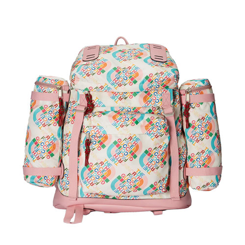 GUCCI/古驰 22新款北面联名系列 男士象牙白/粉色尼龙主题系列印花双肩背包650294UNHAN9169