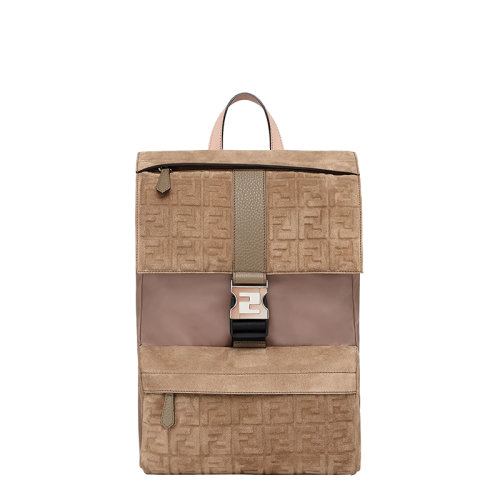 FENDI/芬迪 22春夏新款Fendiness系列 男士中号栗子棕色绒面小牛皮老花拼接双肩包7VZ066AHU7F1GM2