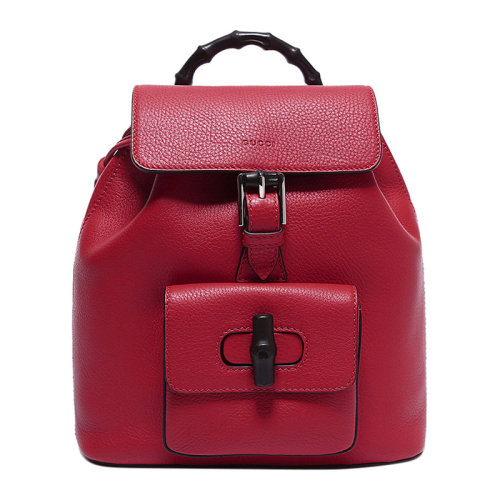 GUCCI/古驰 BAMBOO SAC系列女士纯色牛皮竹节提手流苏吊饰针扣开合手提包双肩包旅行包背包女包 387149-A7M0N 多色可选