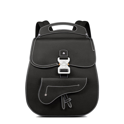 DIOR/迪奥 22新款GALLOP系列 男士黑色粒面牛皮革缉面线装饰马鞍翻盖开合双肩背包1ADBA011YKK_H00N