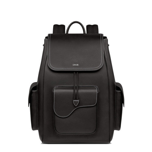 DIOR/迪奥 SADDLE系列 男士黑色粒面小牛皮鞍形翻盖抽绳双肩包1ADBA161YKK_H00N