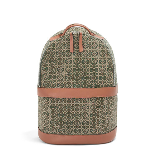 LOEWE/罗意威 22春夏新款 男士卡其绿帆布老花刺配棕色皮牛革双肩背包0010651156