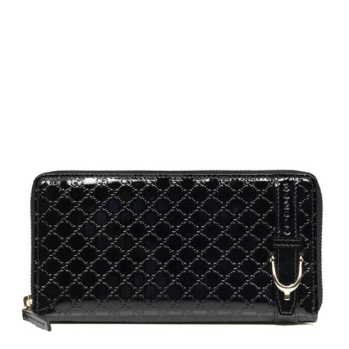 GUCCI 古驰 女士黑色漆皮皮带扣装饰长款拉链钱包 309758 AV13G 1000