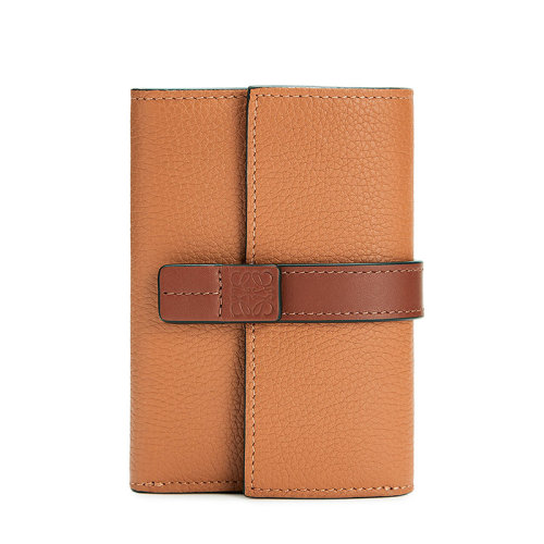 LOEWE/罗意威 女士小号浅焦糖/山核桃小牛皮按扣徽标印花垂直钱包0010528230