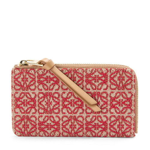 LOEWE/罗意威 22春夏新款 女士红色/暖沙色织物配皮红色老花刺绣金扣拉链开合钱包0010686244