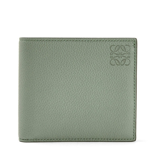 LOEWE/罗意威 男士暗鼠尾草色柔软粒面小牛皮双折零钱卡夹包0010639995