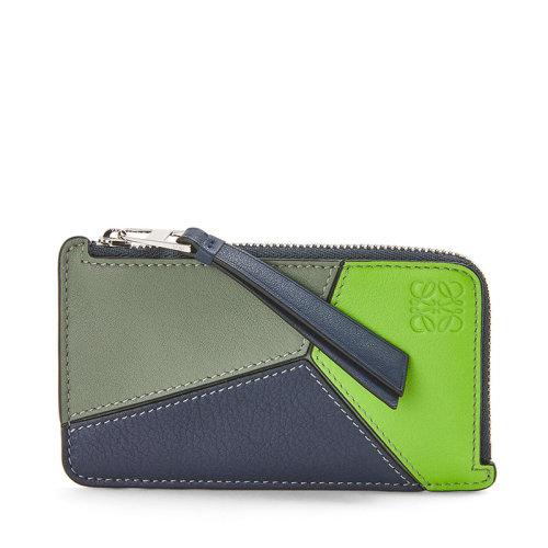 LOEWE/罗意威 Puzzle系列 男士苹果绿色/海军蓝/浅绿色系经典小牛皮零钱卡夹钱包0010639987