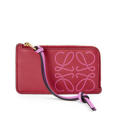 LOEWE/罗意威 22春夏新款 女士胭脂/亮紫色小牛皮激光刺绣金扣硬币卡夹钱包0010686301