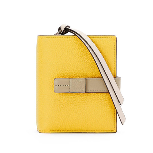 LOEWE/罗意威 22新款 女士黄色/粘土绿色粒面牛皮革徽标压纹搭扣紧凑两折钱包C660Z41X01-0013
