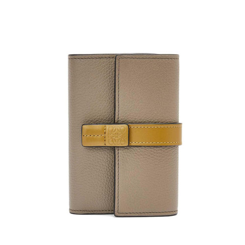 LOEWE/罗意威 22新款 女士小号月桂绿配赭石色粒面牛皮革徽标压纹搭扣三折钱包C660S86X01-1852