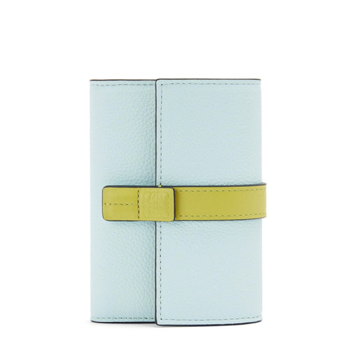 LOEWE/罗意威 女士小号水晶蓝色柠檬黄色柔软粒面小牛皮竖款按扣钱包00106409