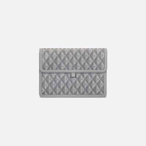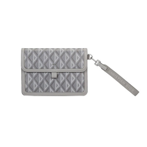 DIOR/迪奥 23新款 HIT THE ROAD系列 男士A5灰色帆布配皮镀钯黄铜字母标志尼龙提花可拆卸腕带磁性翻盖开合手拿包2ESCA444CDP_H42E