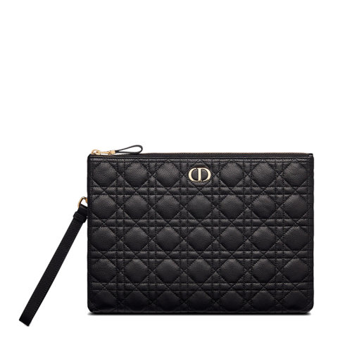 DIOR/迪奥 CARO系列 女士大号黑色柔软棱纹小牛皮金色CD标志日常手拿包S5086UWHC_M900