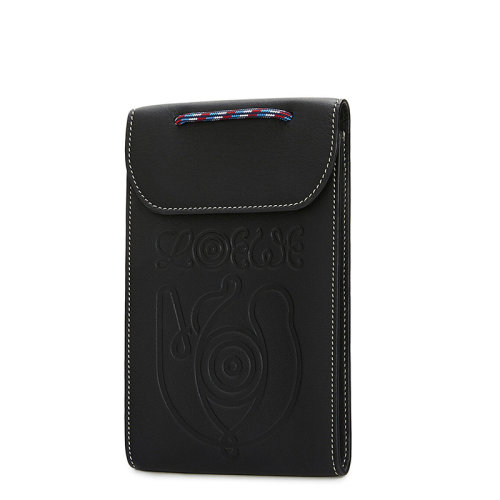 LOEWE/罗意威 22春夏新款 男士黑色小牛皮革眼睛压纹可调节彩色绳带手拿或挂脖包 0010400810