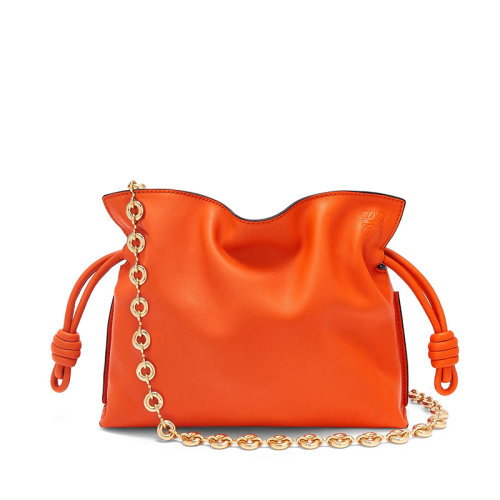 LOEWE/罗意威 22新款Flamenco系列 女士迷你款橙色纳帕小牛皮抽绳单肩手拿包A411FC2X41-9100