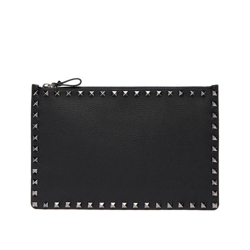 Valentino/华伦天奴 男包女包黑色皮革时尚百搭钮钉装饰手拿包 SY2P0565VAP ONO