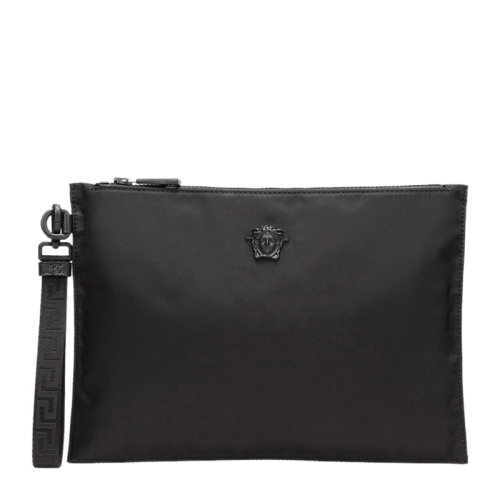 VERSACE/范思哲 男包 字母图案 男士黑色尼龙时尚拉链手拿包 DP84725-DNYVER-KNBN