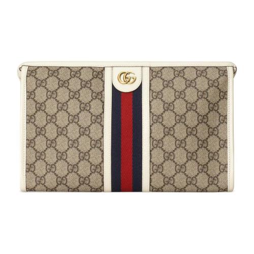 GUCCI/古驰 Ophidia系列男女同款米色帆布双G印花红绿织带装饰手拿包化妆包钱包男包 572767-9IK3T-8745