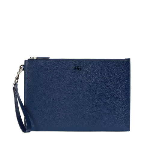 GUCCI/古驰 22春夏新款GG Marmont系列 男士宝蓝色皮革同色调树脂配件拉链开合手拿包4753171T56F4236