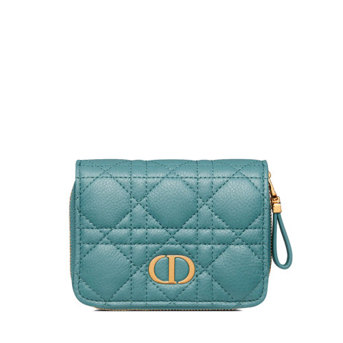 Dior/迪奥 22新款CARO系列 女士天蓝色小牛皮藤格纹缉面线带拉链紧凑型钱包S5032UWHC_M08Z