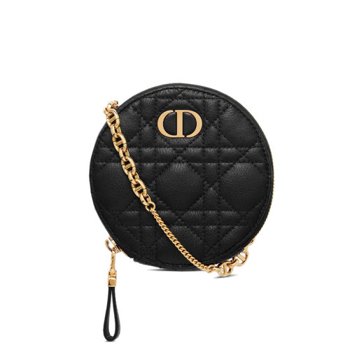 DIOR/迪奥 CARO系列 女士黑色藤格纹小牛皮圆形单肩手拿链条包S5092UWHC_M900