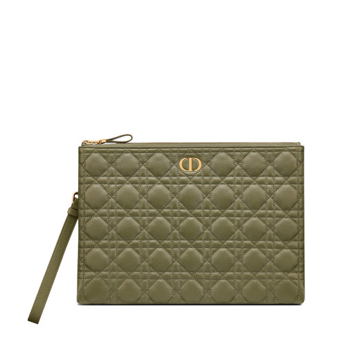 DIOR/迪奥 CARO DAILY系列 女士大号雪松绿色柔软藤格纹小牛皮拉链手拿包S5086UWHC_M67H
