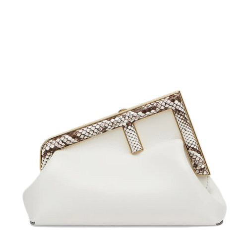 FENDI/芬迪 FIRST系列 女士小号白色纳帕皮革蟒蛇皮饰边F金属搭扣单肩手拿包8BP129AGWRF1GEN