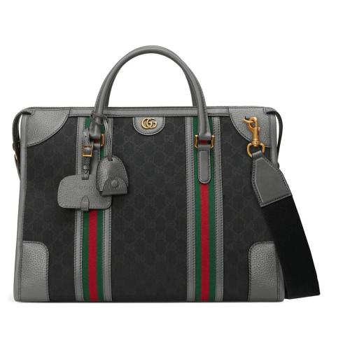 GUCCI/古驰GGSupreme男士黑色帆布条纹织带波士顿旅行包?474131 K5IAN 1095