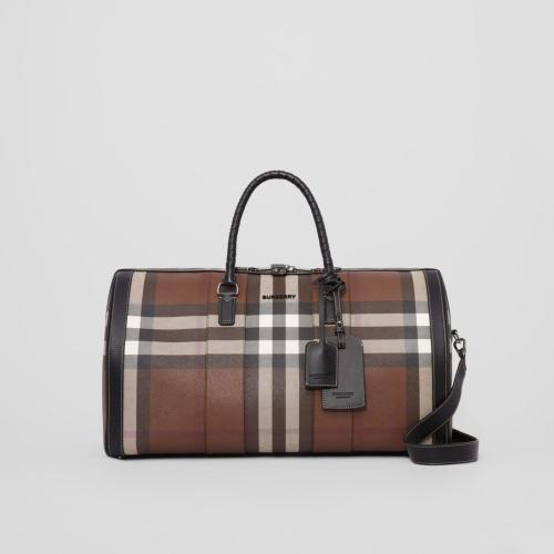 BURBERRY 22年秋冬 男士 徽标装饰格纹拼皮革手提袋 80527731