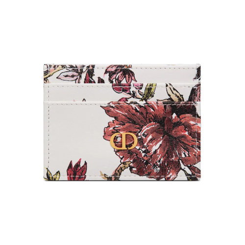 DIOR/迪奥 23新款 Caro系列 女士白色印花小羊皮金色金属饰面卡包S5130UBIE_M884