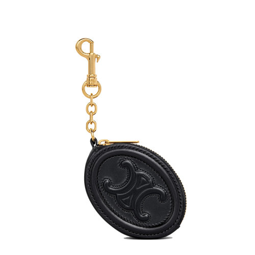 CELINE/赛琳 女士黑色光滑牛皮革带金属钩扣零钱包10I863DPQ.38NO