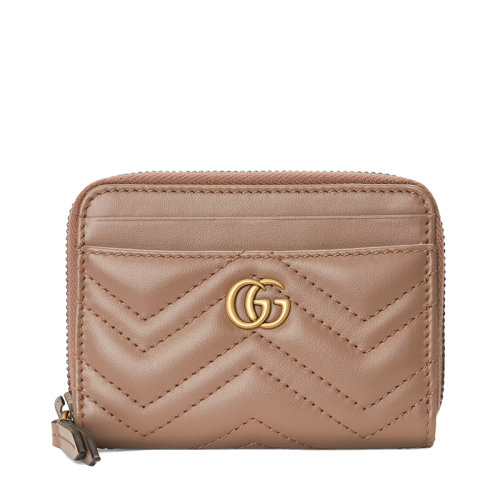 GUCCI/古驰 GG Marmont系列 女士粉色绗缝皮革金色双G装饰拉链卡包卡片夹?671772DTDHT5729