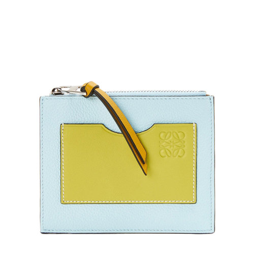 LOEWE/罗意威 女士柠檬黄色水晶蓝色柔软粒面小牛皮拉链卡包卡片夹0010640050