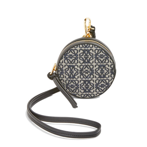 LOEWE/罗意威 Cookie系列 女士黑色海军蓝色徽标提花织物皮革饰边手拿包零钱包0010651214
