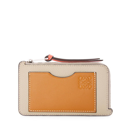 LOEWE/罗意威 女士浅燕麦色/蜂蜜色柔软粒面小牛皮徽标卡包0010526242