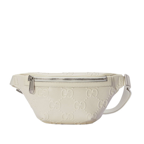 GUCCI/古驰 21新款GG embossé系列 男女同款白色双G压纹皮革斜挎包腰包6585821W3CN9022