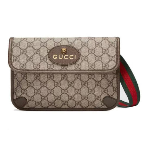 GUCCI 古驰 Neo Vintage 金属虎头 条纹肩带 帆布拼皮 腰包 斜挎包单肩包 男女同款 乌木色/棕色 肖战同款 送礼推荐