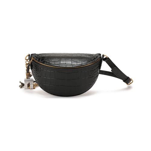 Balenciaga/巴黎世家【22春夏新款】女士鳄鱼纹皮革吊坠装饰胸包斜挎包腰包 565510 1LR4M