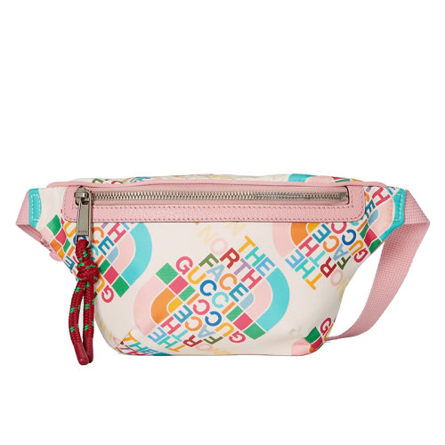 GUCCI/古驰 22新款北面联名系列 男女同款象牙白尼龙饰粉色多色联名主题印花单肩腰包650299UNHBN9169