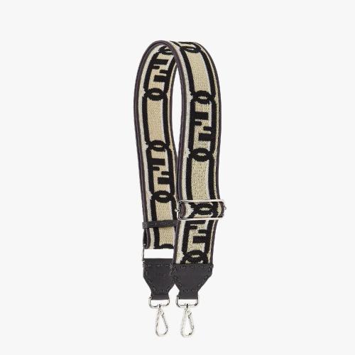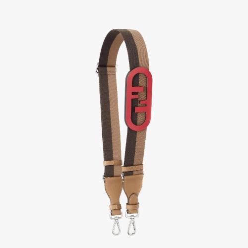 FENDI/芬迪 【22春夏新款】 女士织物配皮Strap You双搭扣织带肩带LOGO刺绣 8AV198 AHWT
