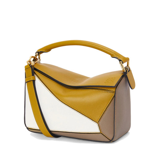 LOEWE/罗意威 22新款Puzzle系列 女士小号赭色/暖白色经典小牛皮拼色单肩斜跨手提拼图包A510S21X55-4025