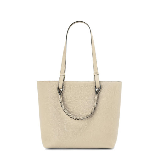 LOEWE/罗意威 女士小号浅燕麦色徽标压纹粒面小牛皮手提单肩托特包0010640357