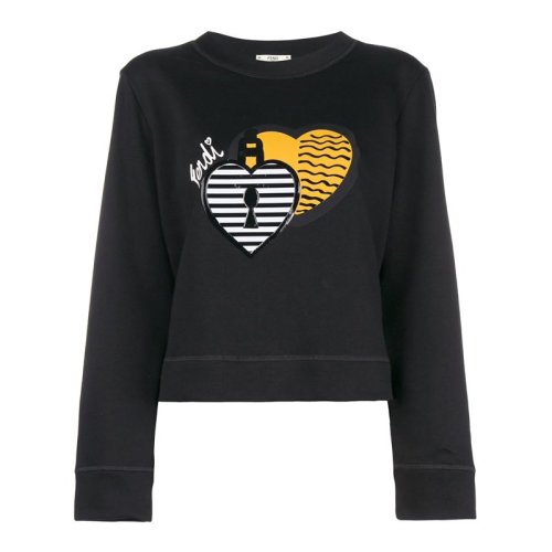 Fendi/芬迪 女装 服装 黑色棉质爱心字母logo刺绣长袖套头衫休闲 女士卫衣