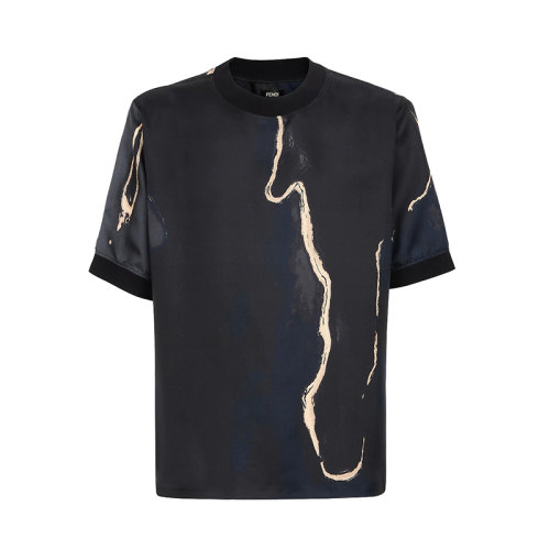 FENDI/芬迪 22年早春新款 男士黑色真丝抽象Earth图案短袖宽松T恤FY1021AI8FF1AJR