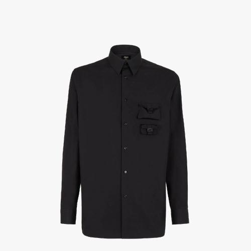 FENDI芬迪 22年春夏 男士 长袖衬衫 黑色棉质衬衫 FS0751A4S6F0QA1