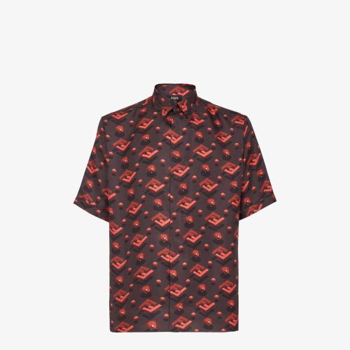 FENDI芬迪 22年秋冬 男士 短袖衬衫 红色桑蚕丝衬衫 FS079_L54F0QK0