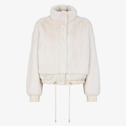 FENDI芬迪 22年春夏 女士 夹克 白色貂皮和尼龙飞行员夹克 FNE03LAHBMF1ENO
