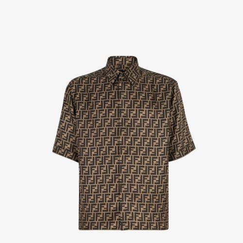 FENDI芬迪 22年秋冬 男士 短袖衬衫 棕色桑蚕丝衬衫 FS079_KEEF1440