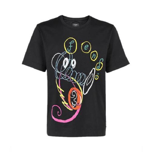 FENDI/芬迪 男士黑色棉质短袖T恤 FY0936AH15 F0QA1 PLFSX