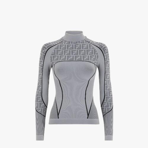 FENDI芬迪 22年秋冬 女士 针织衫 灰色FF高科技布料毛衣 FAF157AK7QF1IAW